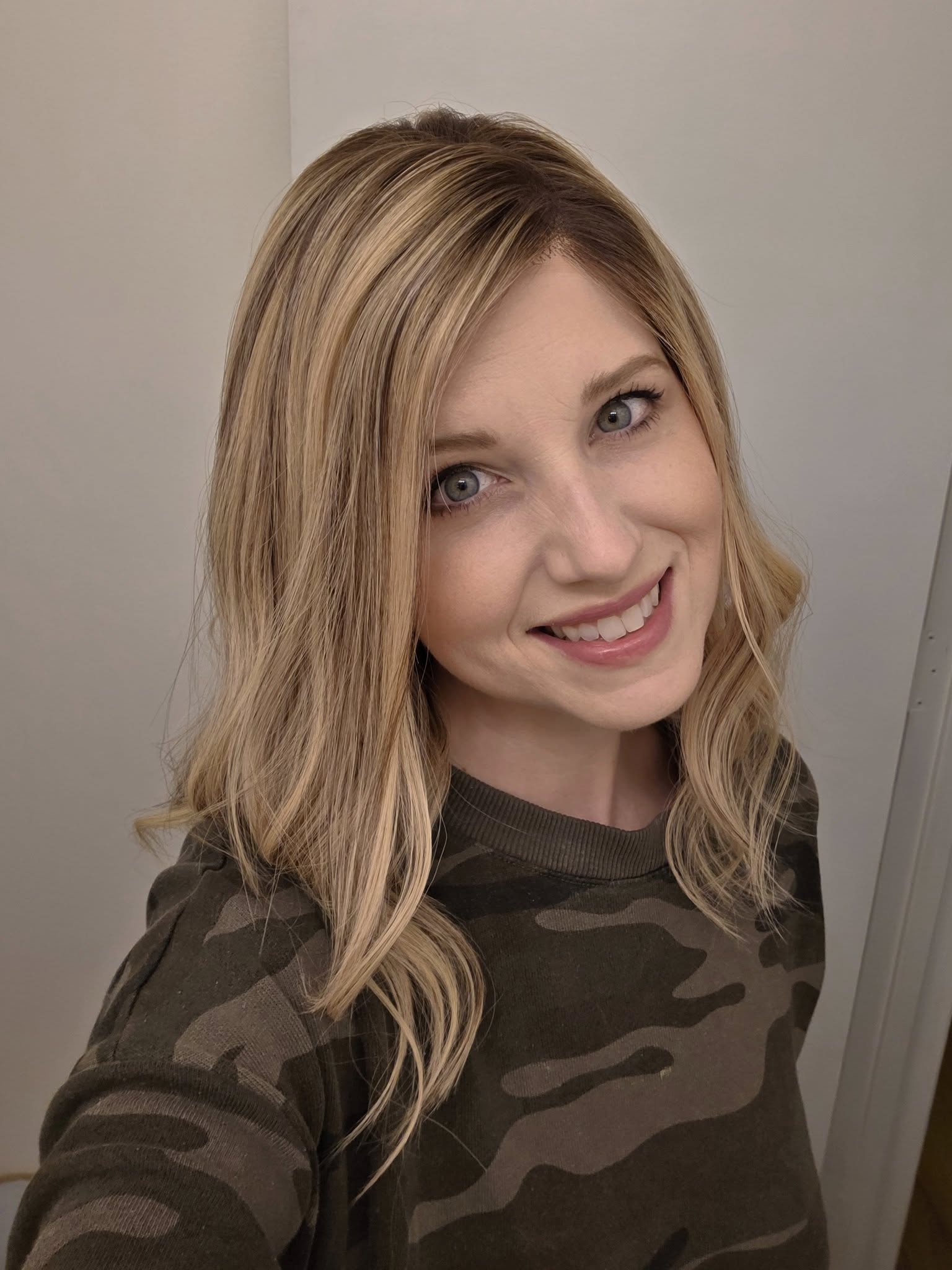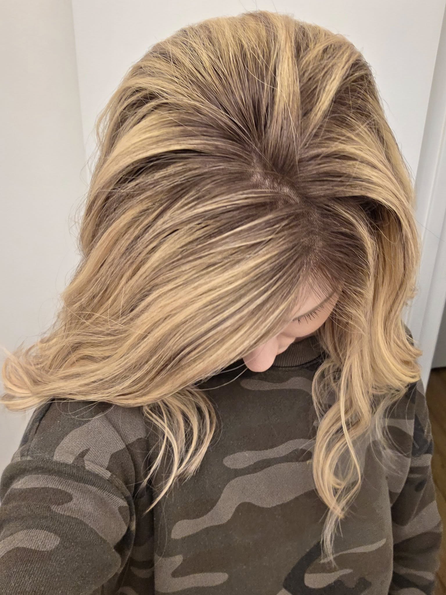Super soft HH wig. No frizzing! (Dimensional dark rooted neutral blonde).