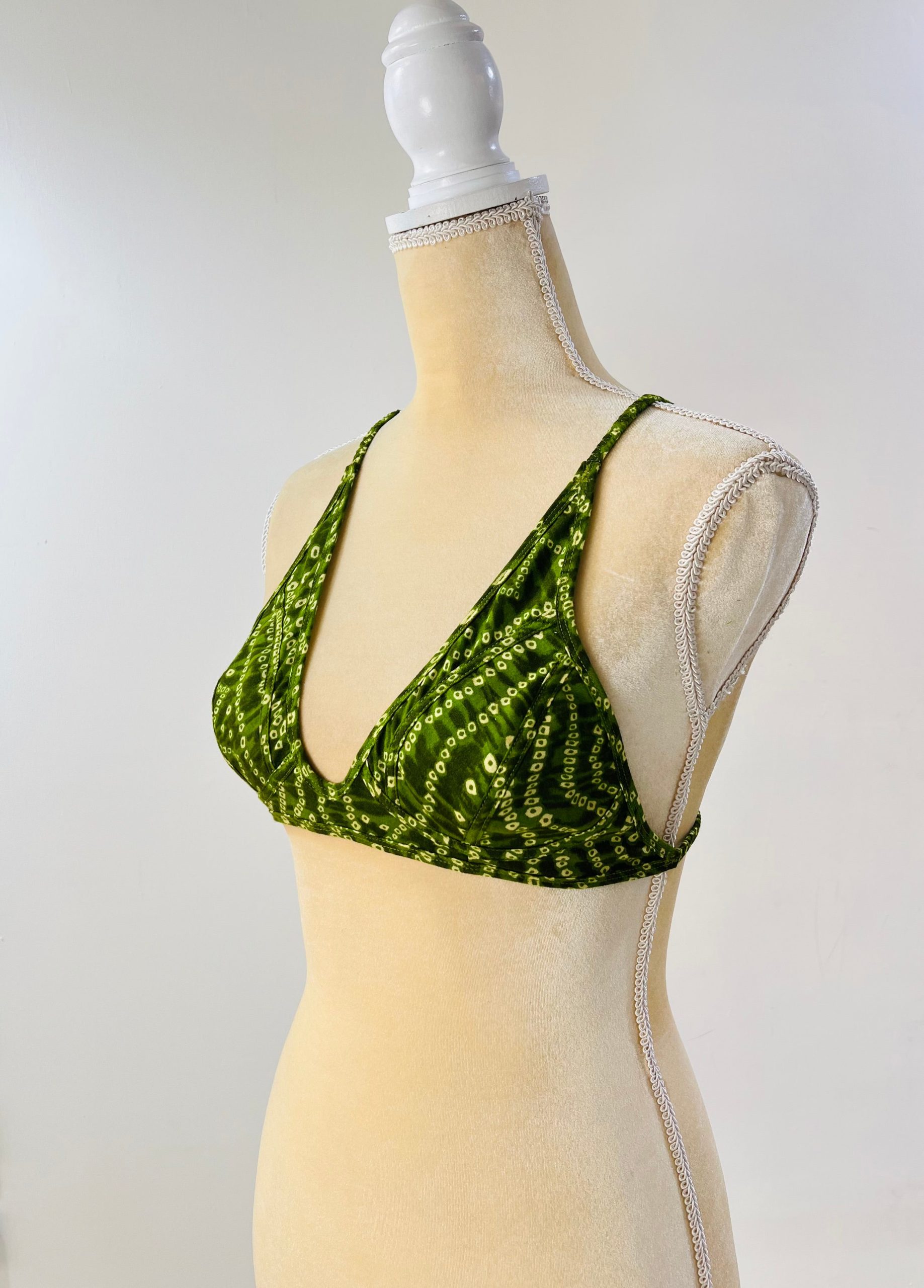 Mehendi green tie & dye pure cotton fabric bra with matching straps.