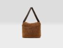 Brown reversible shoulder bag. with one side in coated faux-leather and the other in brown teddy. Featuring rope handles and a removable shoulder strap.