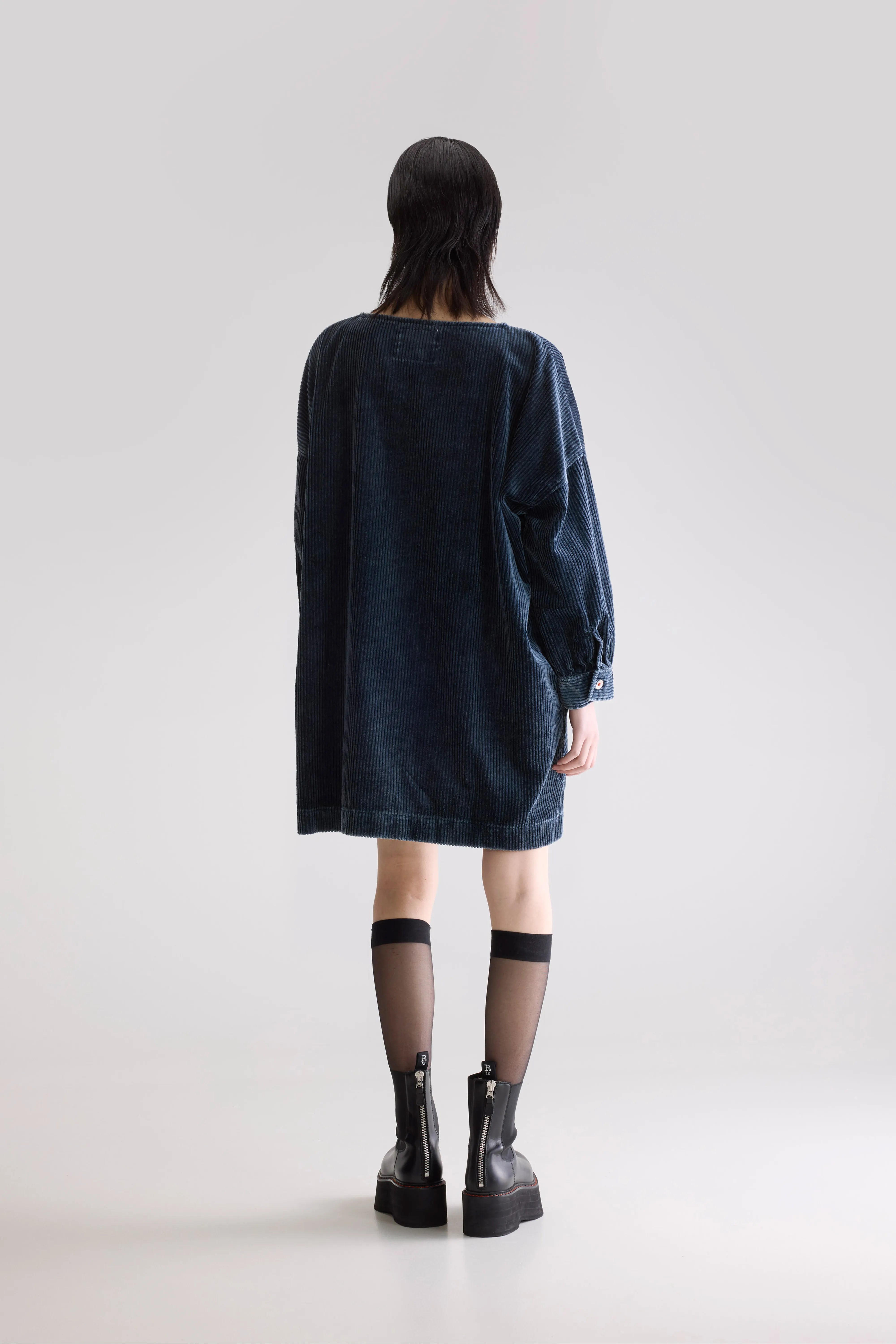 Black-blue corduroy dress in a soft. wide-wale cotton blend with an oversized silhouette.