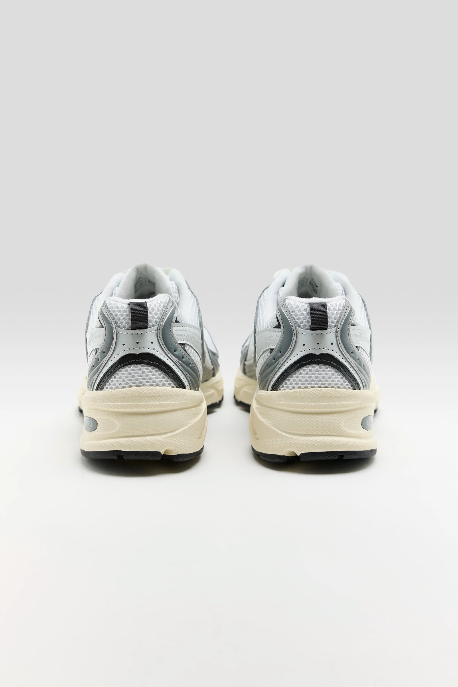 The New Balance 530 sneakers feature a classic mesh and synthetic overlay design with a segmented ABZORB midsole.