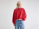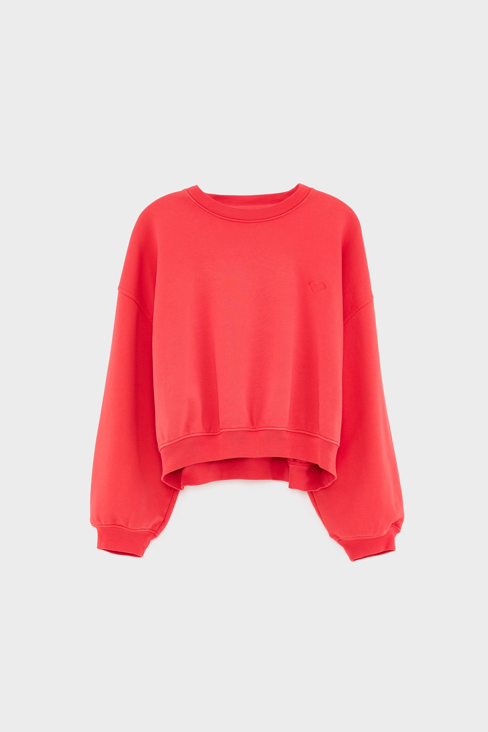 Relaxed cropped sweatshirt with dropped shoulders and a tonal heart embroidery made from cotton jersey in bright red.