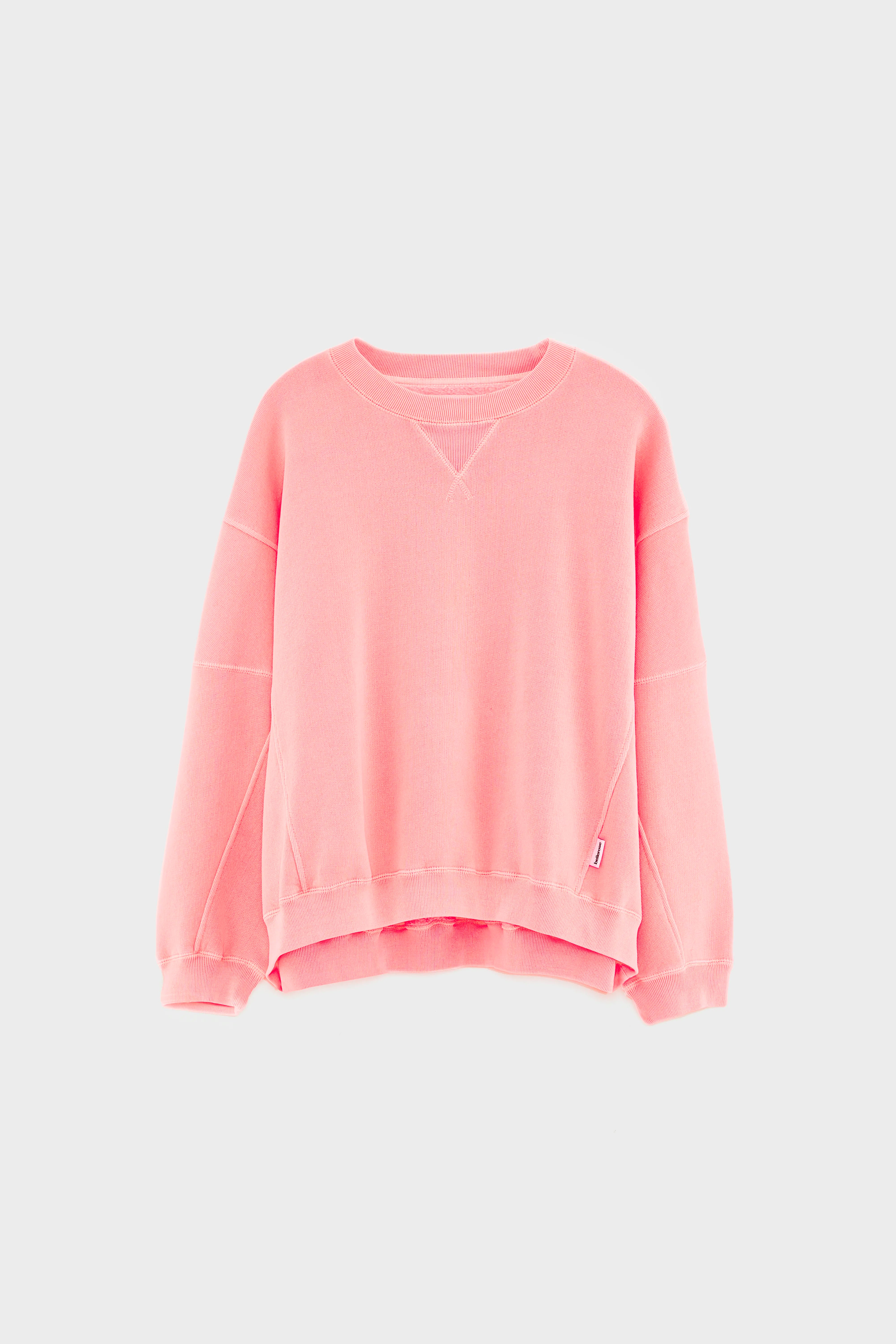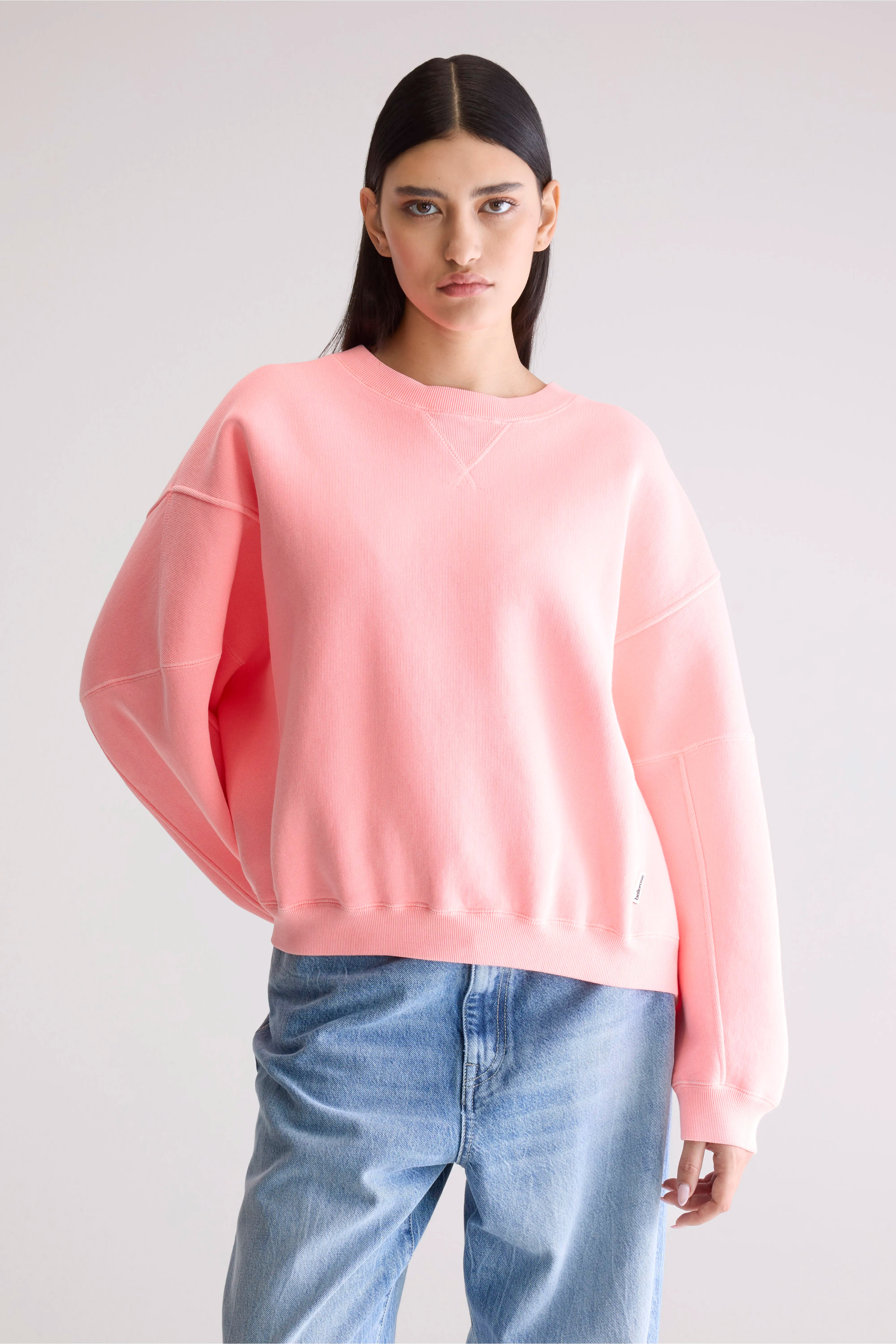Oversized crewneck sweatshirt in flash wash pink with exposed seam details and a Bellerose brand label.