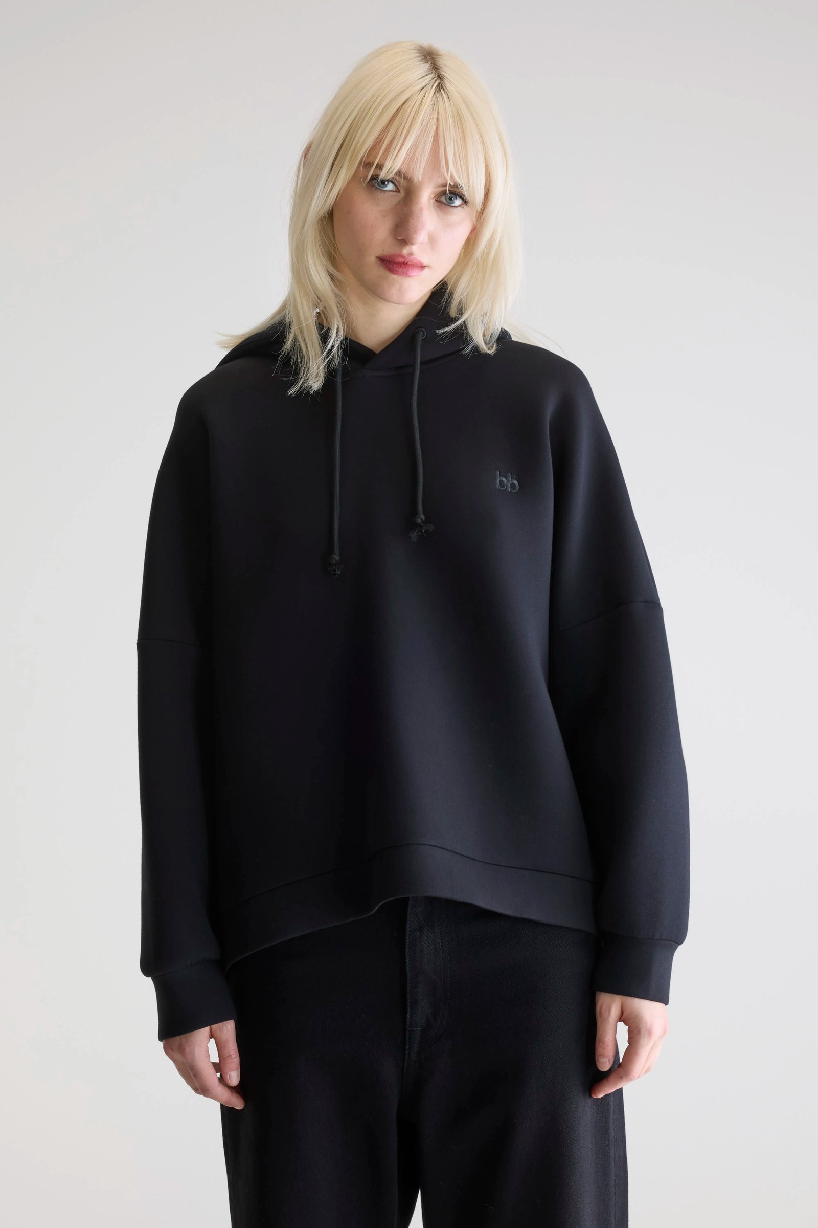 Oversized hoodie in black with a tonal embroidered bb logo on the chest.